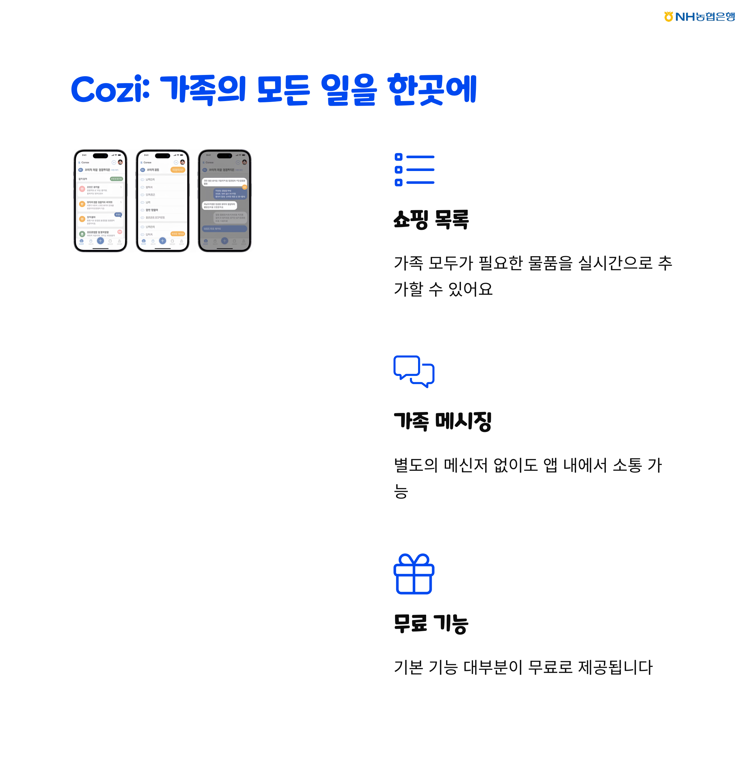 앱마다 디자인과 기능이 다르기 때문에, 가족의 연령대, 디지털 익숙함에 따라 고르는 게 좋아요!
