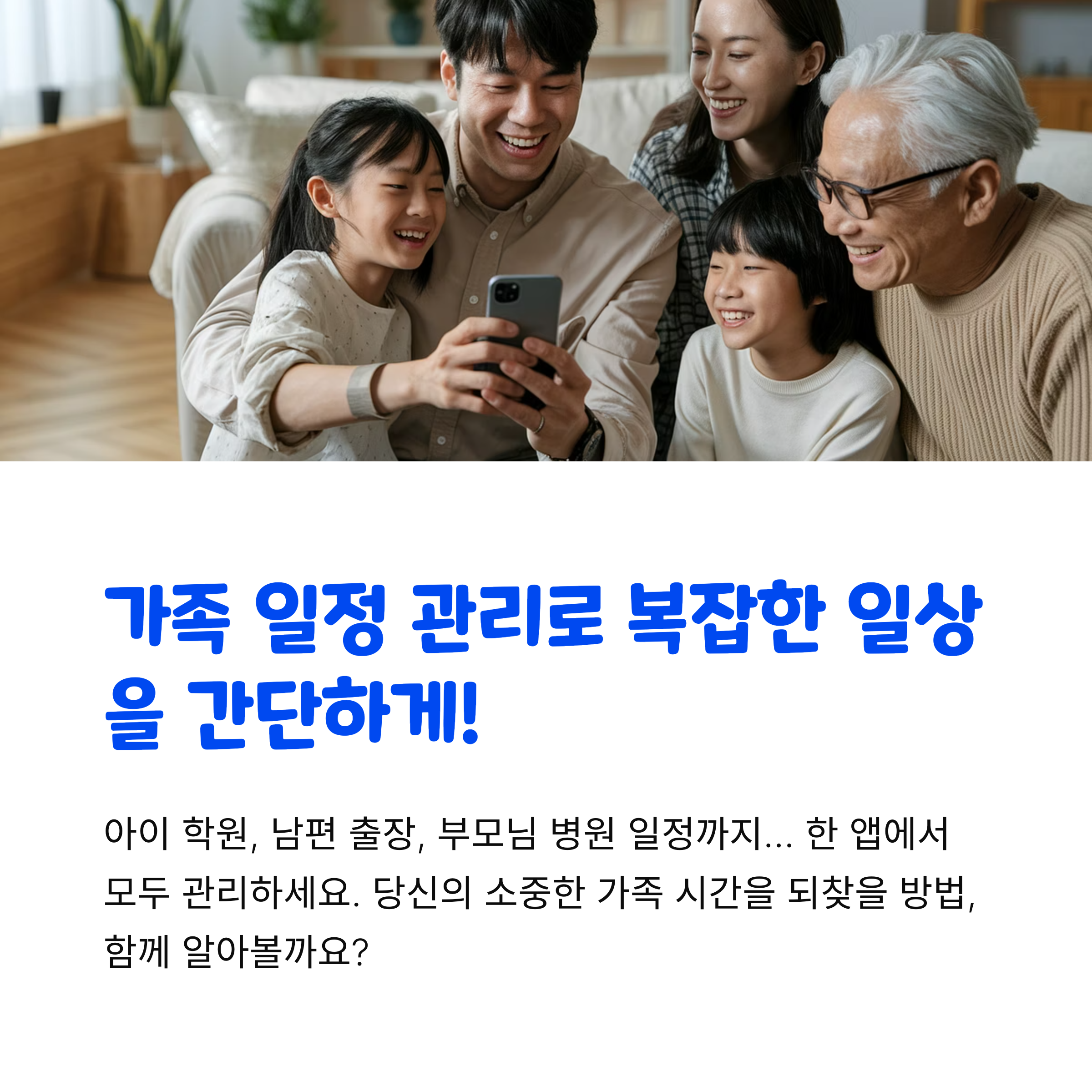 이제 가족도 하나의 팀처럼 움직일 시간이에요. 스마트하게 일정 공유하고, 함께 더 나은 일상을 만들어보세요 🫶